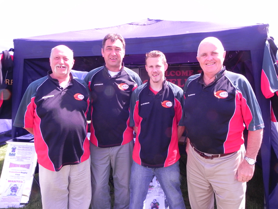 The Camelford RFC stand. Their team included, from left to right, Keith Lovegrove (Treasurer), Ian Elford (Secretary and 2nd Row), Craig Thompson (Full Back), and Justin Thomas (Vice-President).