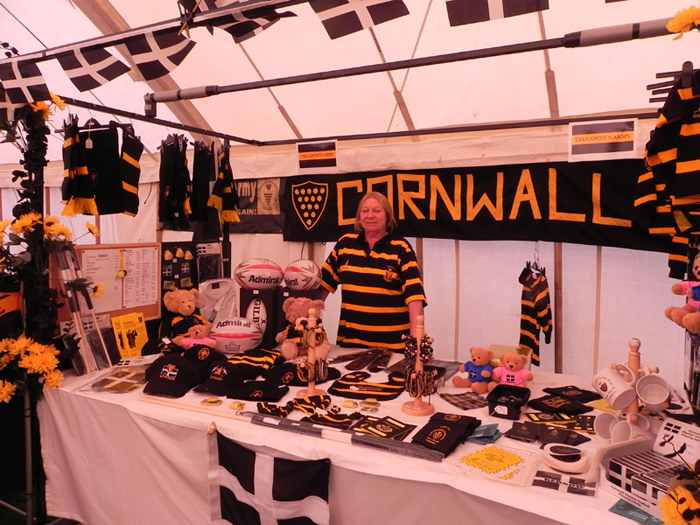 There were a lot of holiday makers attending the show, and many of those with a rugby background came forward to introduce themselves, including a family from Hertford; the father is involved with Hertford RFC and the son currently playing for Old Patesians. Another family from South Yorkshire with a young son fully decked out in a Leeds Rhinos rugby league replica strip were pleased to see the stand and bought a rugby ball and a Cornwall top.