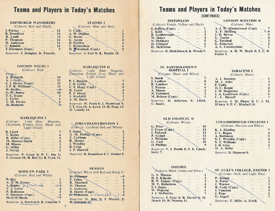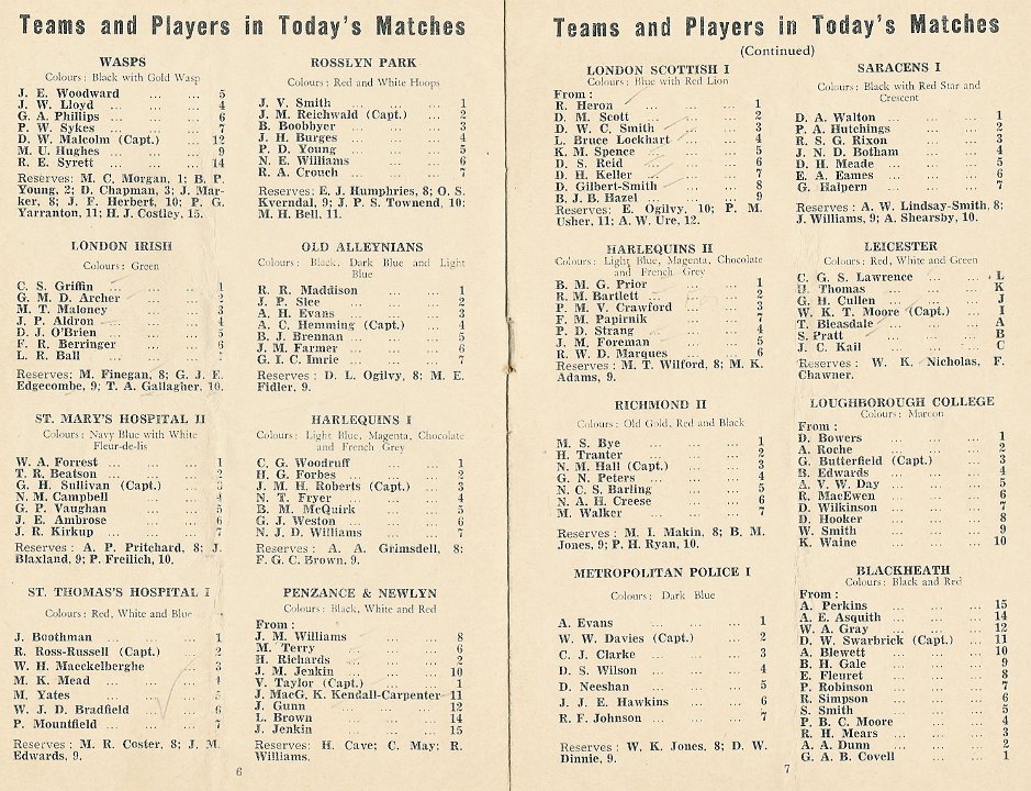 19 1970 Team lists for Middlesex 7s |