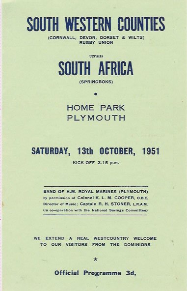 4 1951 SOUTH WESTERN COUNTIES v SOUTH AFRICA, at Plymouth |