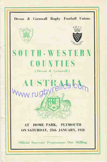 6 1958 SOUTH WESTERN COUNTIES v AUSTRALIA, at Plymouth |