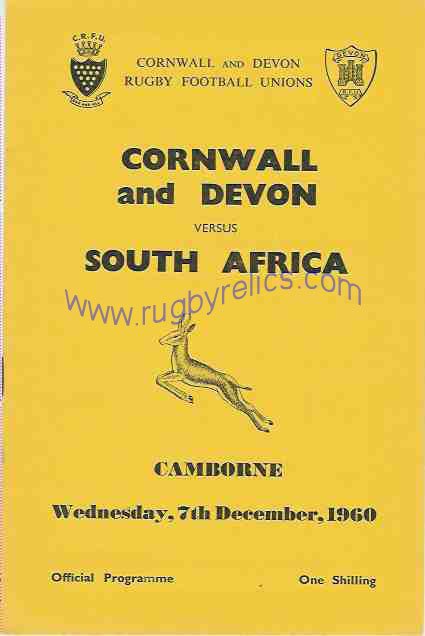 7 1960 CORNWALL & DEVON v SOUTH AFRICA, at Camborne |