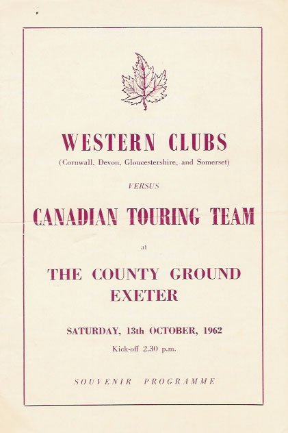 9 1962 WESTERN CLUBS v CANADA, at Exeter |