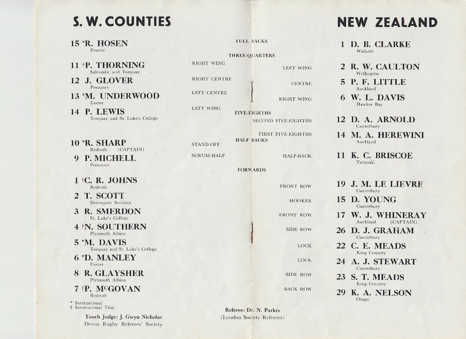 11 1963 Team lists for South Western Counties v New Zealand |