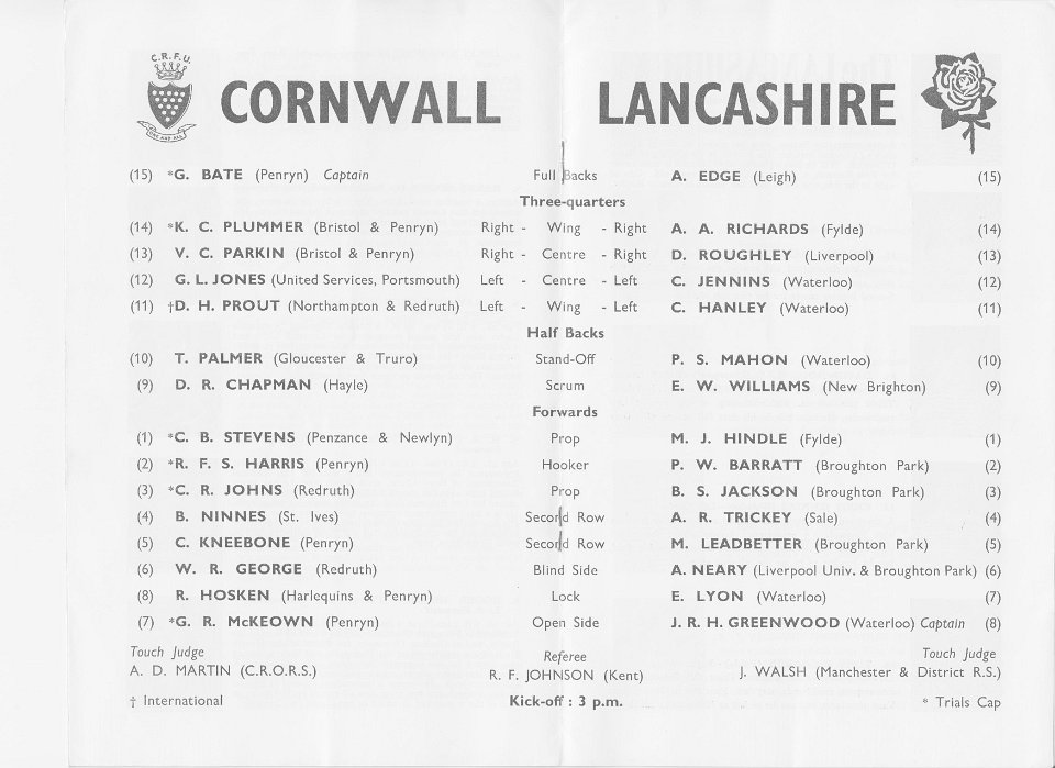 15 1969 COUNTY CHAMPIONSHIP FINAL, CORNWALL v LANCASHIRE, at Redruth |