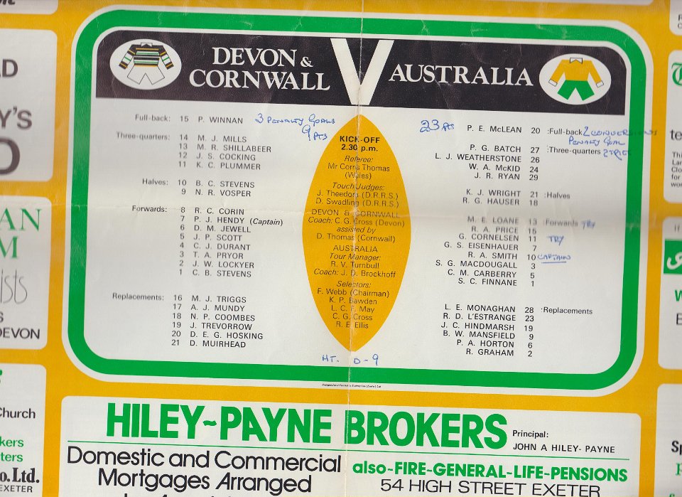 22 1975 Team lists for Devon & Cornwall v Australia |