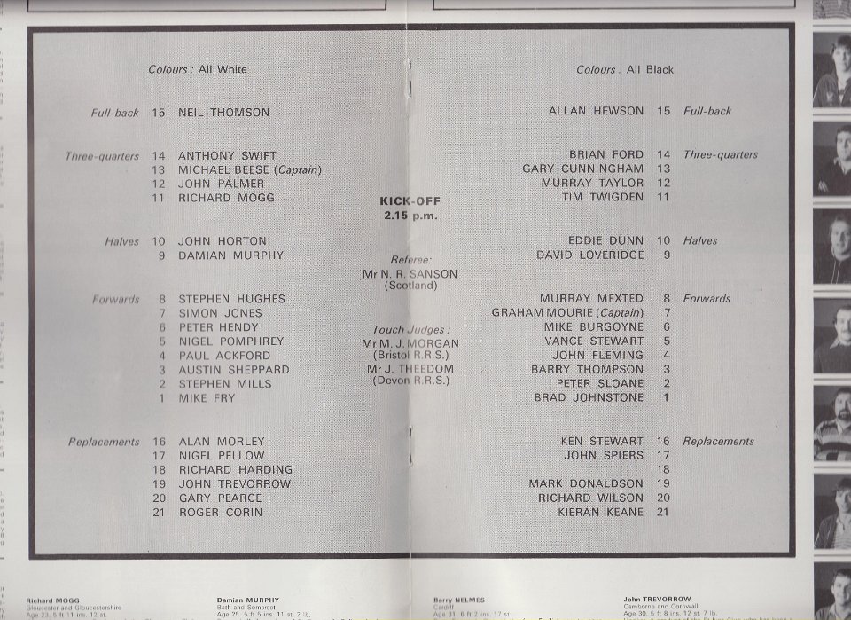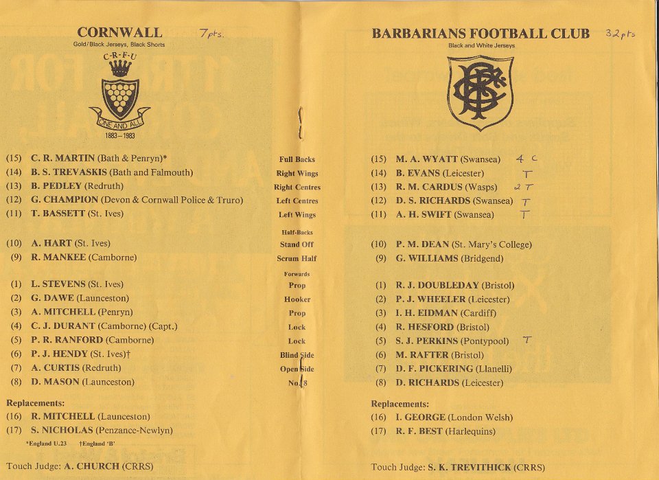 29 1983 Team lists for Cornwall v Barbarians |