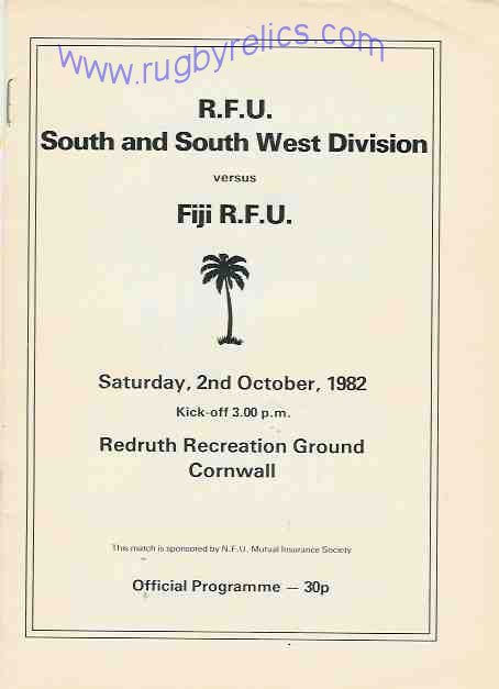 27 1982 SOUTH & SOUTH WEST DIVISION v FIJI, at Redruth |