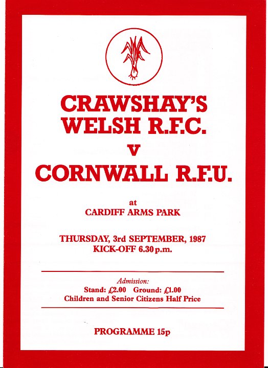 33 1987 CRAWSHAY'S WELSH RFC v CORNWALL, at Cardiff Arms Park |