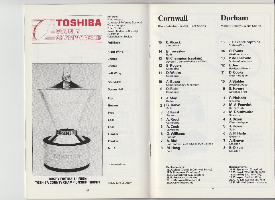 34 1989 COUNTY CHAMPIONSHIP FINAL, CORNWALL v DURHAM, at Twickenham |