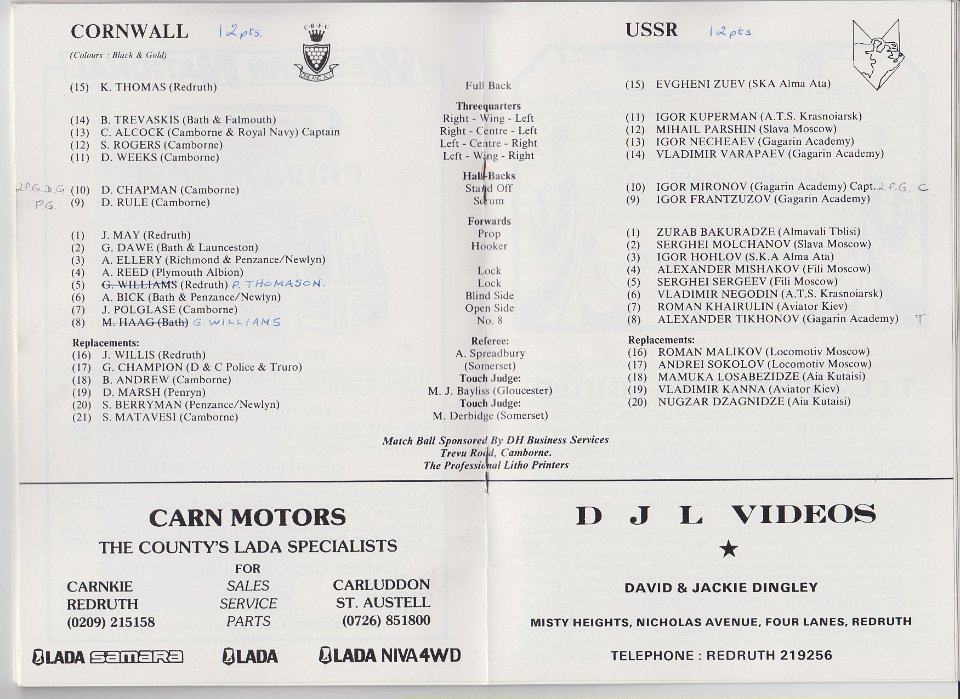 38 1989 CORNWALL v USSR, at Redruth |
