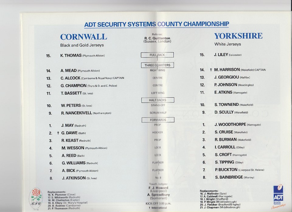 40 1991 CORNWALL v YORKSHIRE, County Championship Final, at Twickenham |