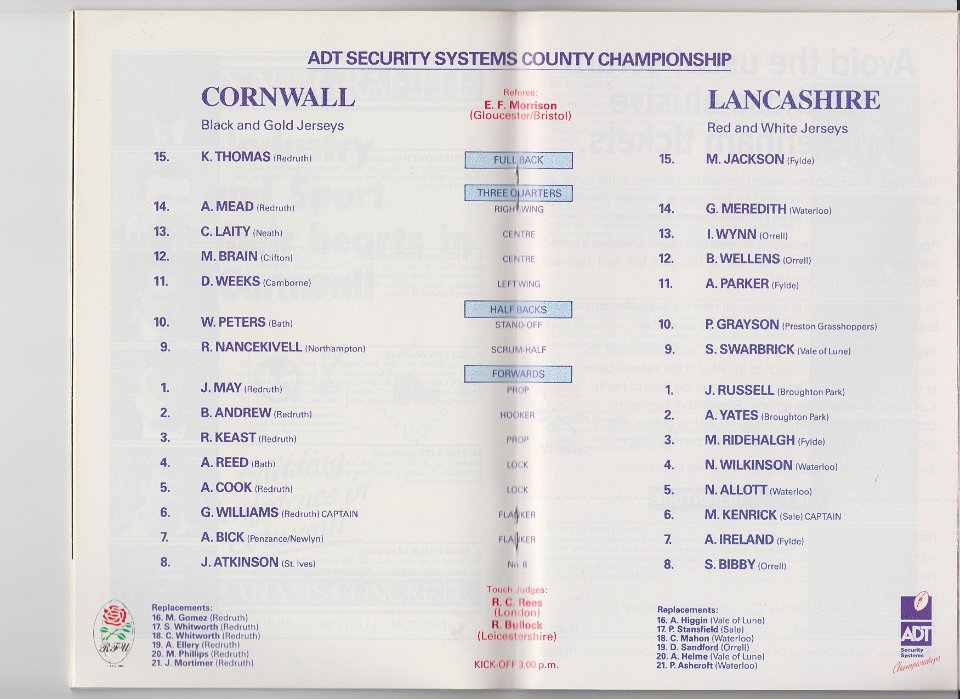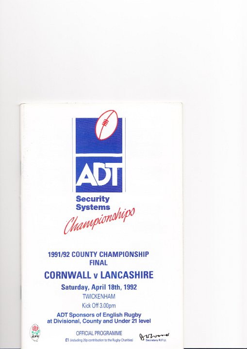 42 1992 CORNWALL v LANCASHIRE, County Championship Final, at Twickenham |