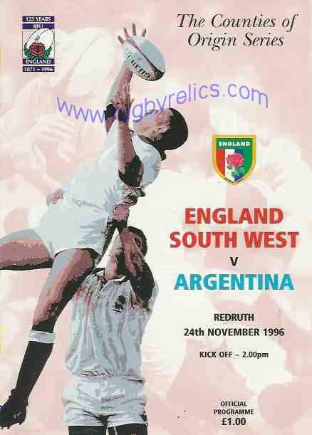45 1996 ENGLAND SOUTH WEST v ARGENTINA, at Redruth |