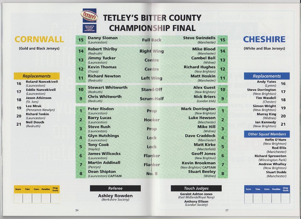 46 1998 CORNWALL v CHESHIRE, County Championship Final, at Twickenham |