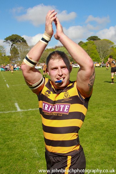 4 Cornwall v Hertfordshire 180513 Cornwall, scrum-half Greg Goodfellow (Redruth) celebrates by throwing the ball into the crowd. Photo by Simon Bryant/Iktisphoto. Mobile: 07990592945 |