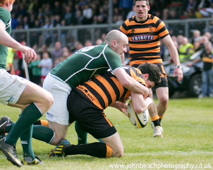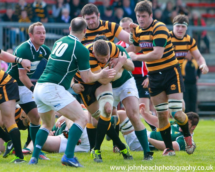 13 Cornwall v Hertfordshire 180513 Cornwall, lock Damien Cook (Redruth) is tackled by Hertfordshire, flanker and skipper Brett McNamee (Old Albanians). Photo by Simon Bryant/Iktisphoto. Mobile: 07990592945. |