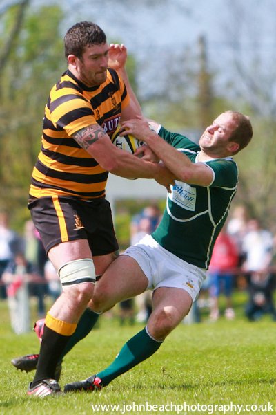 21 Cornwall v Hertfordshire 180513 Cornwall, wing Rhodri McAtee (Plymouth Albion) hands off Hertfordshire, centre Sam Winter (Bishop Stortford). Photo by Simon Bryant/Iktisphoto. Mobile: 07990592945. |