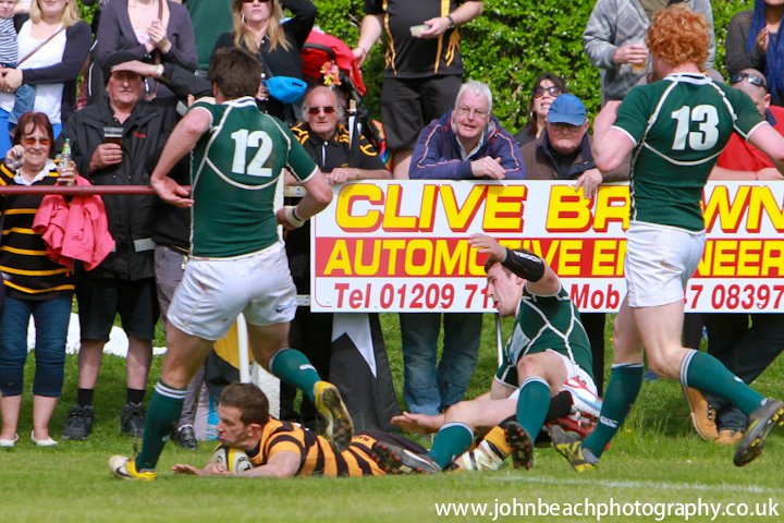 16 Cornwall v Hertfordshire 180513 Cornwall, fly-half Paul Thirlby (Redruth) dives through for a try. Photo by Simon Bryant/Iktisphoto. Mobile: 07990592945. |