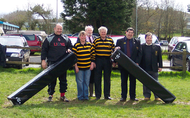 The next picture shows TASC Secretary Ian Gordon presenting post protectors to Liskeard & Looe. From left to right are Chris Hocking (Liskeard & Looe Coach), Trixie Gordon, Chris Jewells (L&L President), Ian Gordon, Wes Pound (L&L Secretary), and TASC Chairman Phil Trevarton.