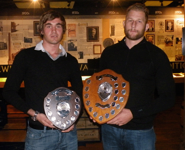 Adam Lewarne (left) and Mark Bright with their awards