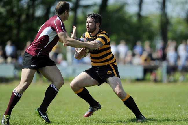 Scrum-half Greg Goodfellow sets off on a run. Photo by Simon Bryant/Iktisphoto.